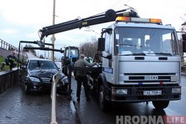 Каля 8.30 ў суботу 11 лістапада аўтамабіль Mercedes на вуліцы Гарнавых упаў з горкі на тратуар і затрымаўся паміж агароджай і падпорнай сценкай. На…