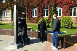 Новы інфармацыйны стэнд на вуліцы Ажэшкі і тыдня не прастаяў спакойна: у выходныя невядомыя выбілі адзін з элементаў. Імаверна, ударам нагі. Кавалак стэнда праваліўся…