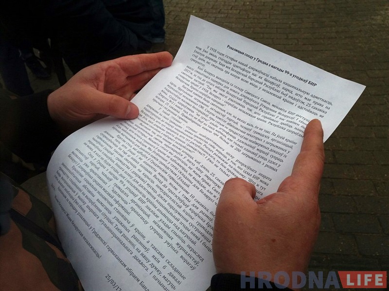 За 2,5 часа акции горожанам рассказали об истории праздника, подняли наболевшие темы, приняли резолюцию к Гродненскому горисполкому, требовали от властей прекратить преследование активистов и журналистов, прекратить пропаганду в государственных СМИ и освободить арестованных. В конце акции гродненцы прочитали гимн БНР.