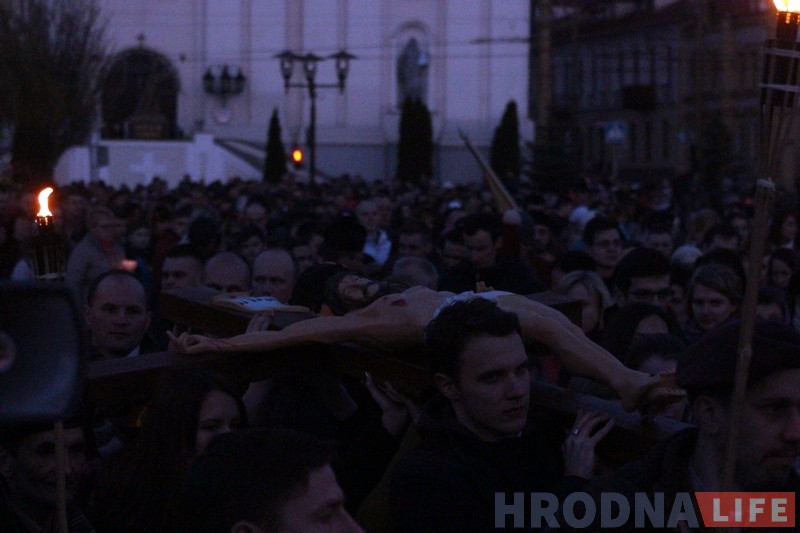 Накануне Вербного воскресенья в субботу 8 апреля сотни католиков после окончания вечернего богослужения в Кафедральном соборе прошли Крестный путь по центру Гродно. Молодежь со всех приходов города по очереди несла крест, пела и читала фрагменты Евангелия и собственные размышления.