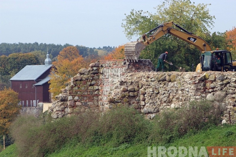Разборка частей консервации оборонительной стены Старого замка в Гродно началась 12 октября. За несколько дней рабочие должны разобрать часть укрепления, которая надстраивалась в польский и советский периоды. Работы ведутся согласно проекту реконструкции.
