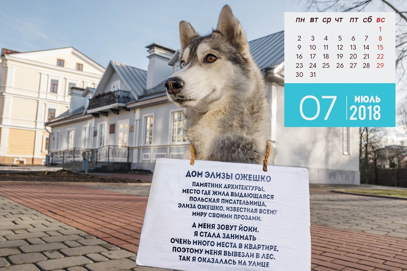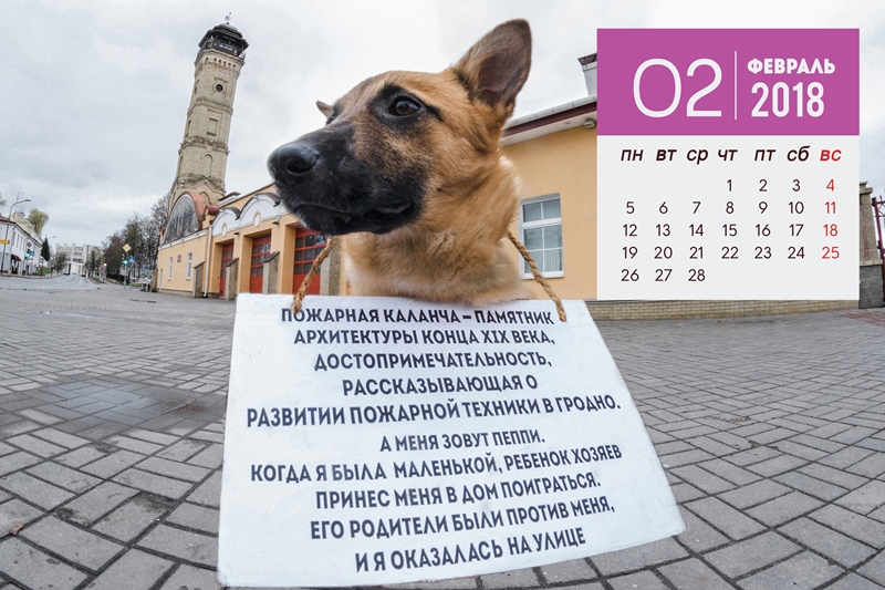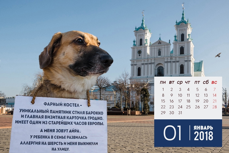 Фотограф Ян Хведчин и зоозащитная организация «Преданное сердце» представили календарь, в котором беспризорные животные Гродно «рассказали» свои истории на фоне городских достопримечательностей.