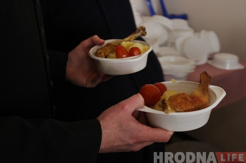 Перед обедом с наступающим праздником гродненцев поздравил епископ Александр Кашкевич. Он помолился с людьми и раздал пасхальные яйца.