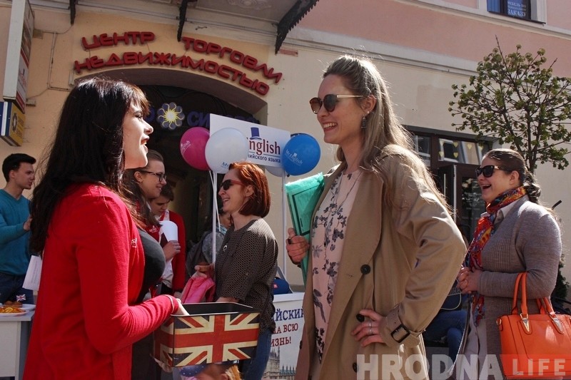 Самой веселой и англоговорящей в городе стала 23 апреля улица Советская. Несколько часов преподаватели школы Mr.English общались с горожанами на английском языке, рассказывали интересные факты о культуре Англии, играли в квизы на сообразительность и проверяли интуицию горожан. Все это было организовано во Всемирный день английского языка. И это, кстати, не единственная акция Mr.English — всю неделю в самом центре Гродно можно будет почувствовать английскую атмосферу.