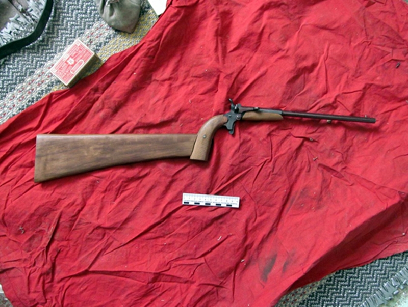 рассказывает начальник уголовного розыска Ленинского РОВД Виталий Зезюлевич. — Там в немецком флаге была разобранное двуствольное охотничье ружье, малокалиберный пистолет, так называемый «Монте-Кристо», и 125 патронов различного калибра для ружья и пистолета».
