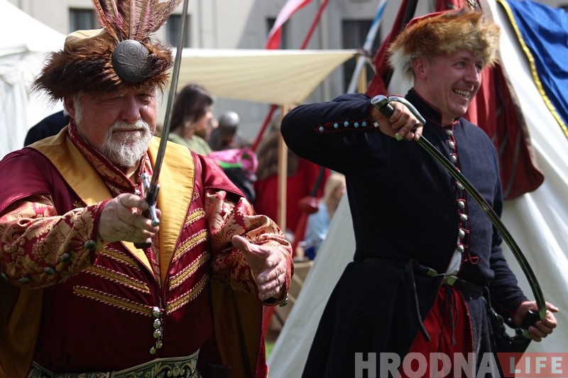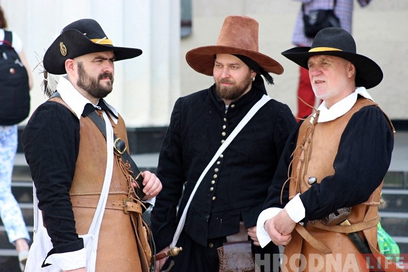 Для многих реконструкторов это уже третий приезд в Гродно. В основном все они занимаются реконструкций эпохи 16-17 веков. Во дворе Нового замка гостей встречало большое количество горожан. Многие подходили к реконструкторам знакомиться и фотографироваться.