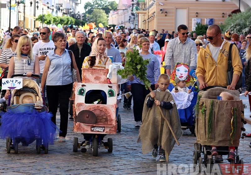 В международный день семьи, который отмечается 15 мая, в Гродно состоялось шествие детских колясок. В этом году театрализованное мероприятие проходило уже в четвертый раз и собрало1 более 80 участников.