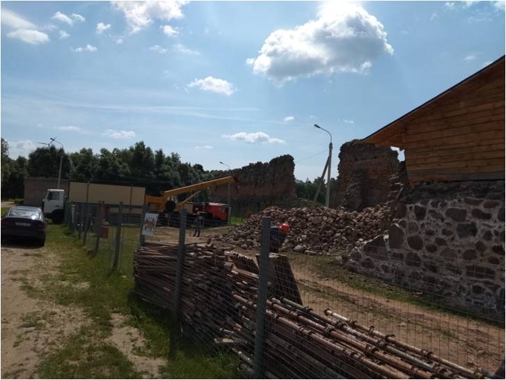 В Гольшанах приступили к реставрации кладки стен, и результат этой работы будет заметен уже к концу августа. К этому времени планируется завершить и обустройство кровли в Северной башне замка. Продолжились работы и у стен Кревского замка в Сморгонском районе, которые коснутся на этот раз еще одного фрагмента – северо-восточной стены.
