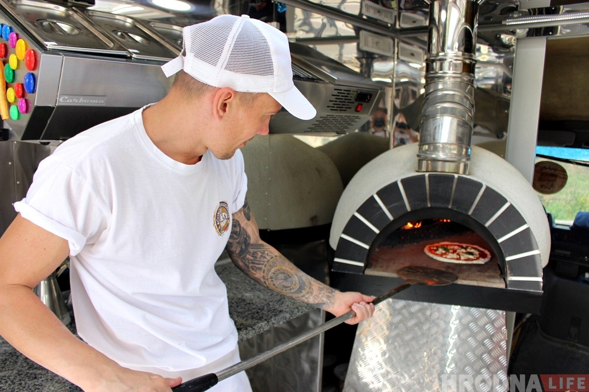 С 21 августа гродненские фудтраки «Wake сup» и «PizzaTruck» запустили совместный проект. Теперь на территории автомойки на Тавлая можно будет купить не только напитки, но и пиццу.