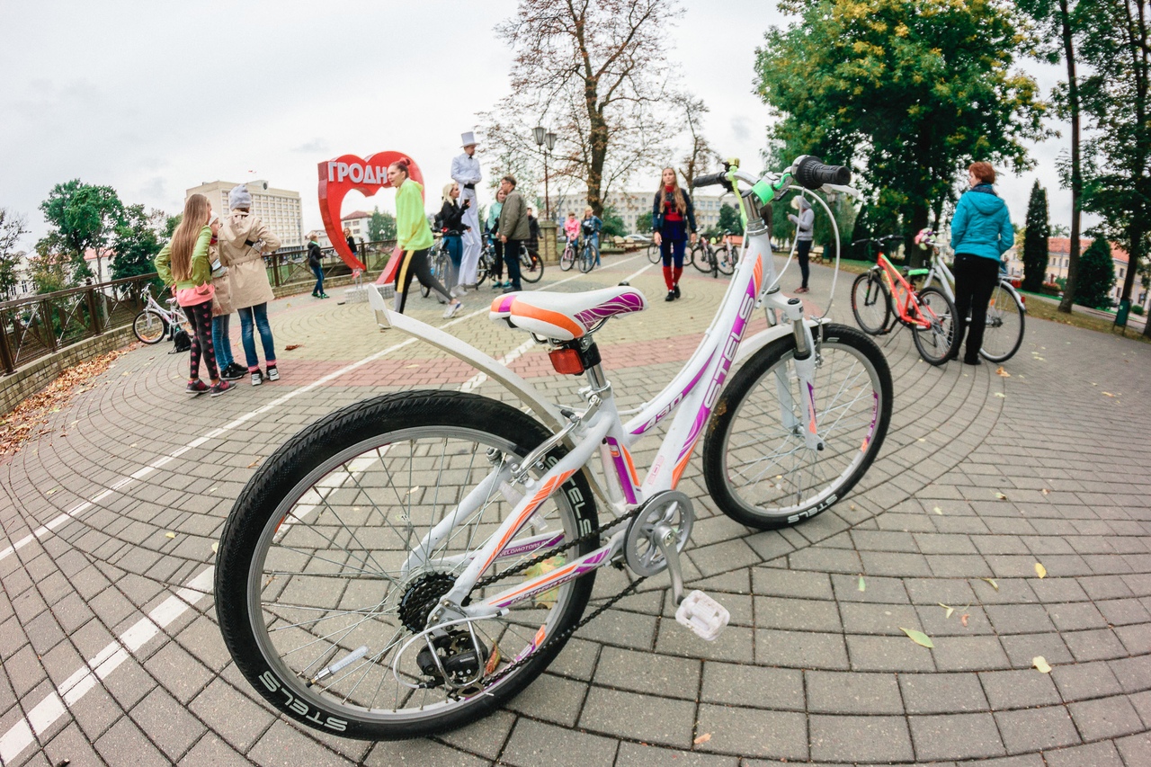 Собрало женщин и девушек Гродно на велопрогулки «ВелоГродно». Мероприятие — часть Европейской недели мобильности в Гродно. Проходит оно при поддержке общества «Зеленая сеть».