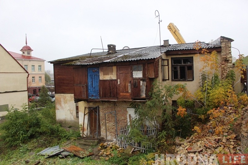 В доме уже более 5 лет не жили люди. Планируется, что на месте снесённой постройки в будущем появится двухэтажное административное здание. Этот кусок земли Гродненский горисполком продавал на аукционе еще в феврале за 50 тысяч рублей. Купили ли землю в этом месте, нигде не сообщается.
