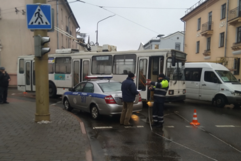 12 декабря 57-летний водитель на «Ауди» не уступил дорогу на разрешающий зеленый сигнал светофора и допустил столкновение с завершавшим маневр правого поворота троллейбусом, пишет ГАИ Гродно.