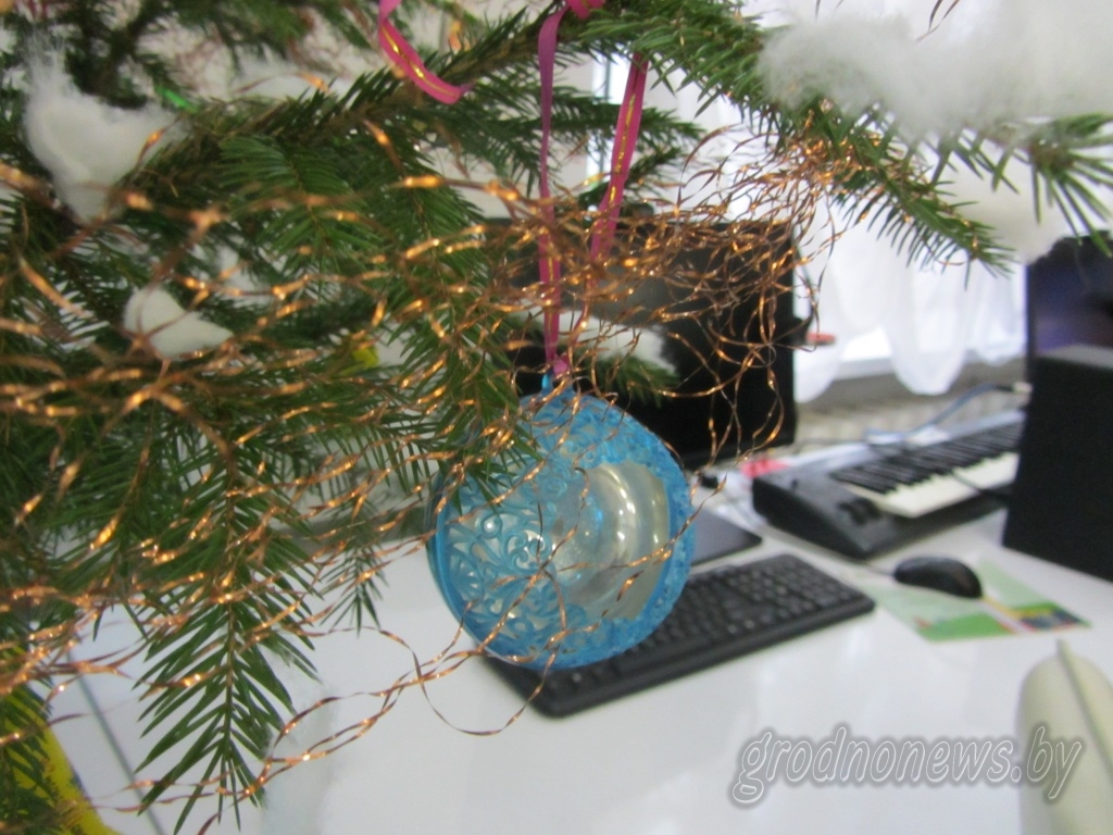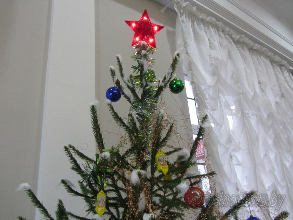 Тут есть популярные ранее цветные бумажные и картонные фигурки ангелочков и библейских персонажей, которые подвешивались на елку на ниточках. Соседствуют с ними фабричные украшения и из стекла и раритетная красная пятиконечная звезда-верхушка. «Это маленькая копия рубиновых звезд Московского Кремля, которые были популярны в 1960-1980-е годы», – говорит гродненский коллекционер.