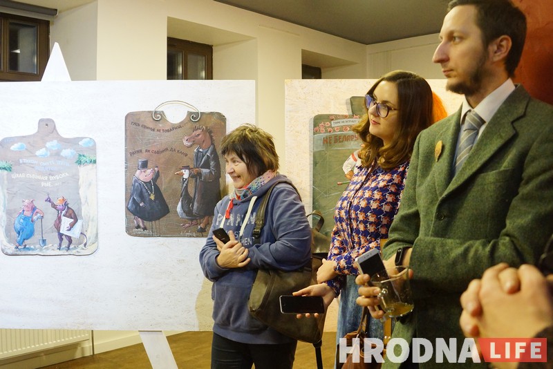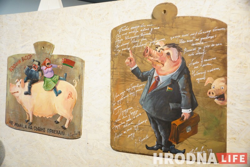 "Ну не свиньи, а?" Алесь Суров представил в Гродно выставку "В стране сала"