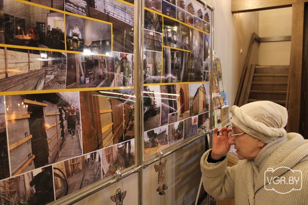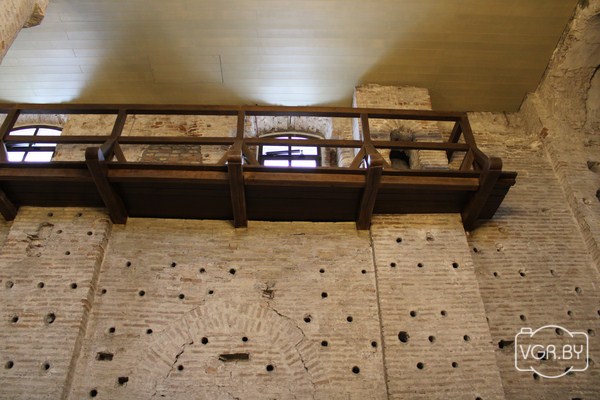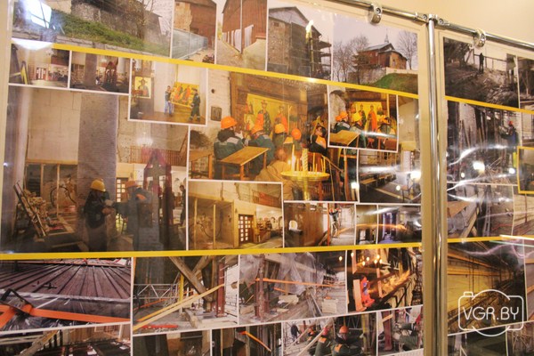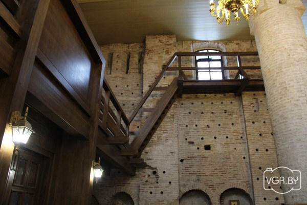 — Немало пришлось потрудиться на замене галереи, идущей вдоль северной стены. Её не обновили полностью, как было с балконом. Доски были аккуратно демонтированы, после чего их обработали специальным защитным составом, отшлифовали и вернули на прежнее место. При этом стоит отметить, что теперь балкон и галерея выполнены в одном цвете и формируют единую композицию, хотя и сделаны из материалов различных годов. При замене потолка использовались светлые доски, — рассказал главный инженер деревообрабатывающего производства ОАО «Гродножилстрой» Владимир Чирич.