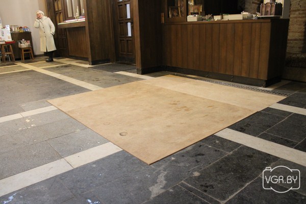 Впрочем, часть старинной конструкции увидят все желающие. Решено, что фрагмент древнего пола и колонны накроют специальным ударопрочным стеклом и подсветят. Будущая экспозиция находится слева от входа и накрыта деревянным настилом. Гродненская фирма – изготовитель стекла обещала привезти конструкцию в первых числах января 2019 года, добавил Владимир Чирич.