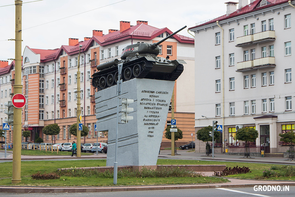 Постамент с танком Т-34 на Советской площади обследуют, чтобы проверить, нет ли трещин и других повреждений, пишет «Вечерний Гродно».