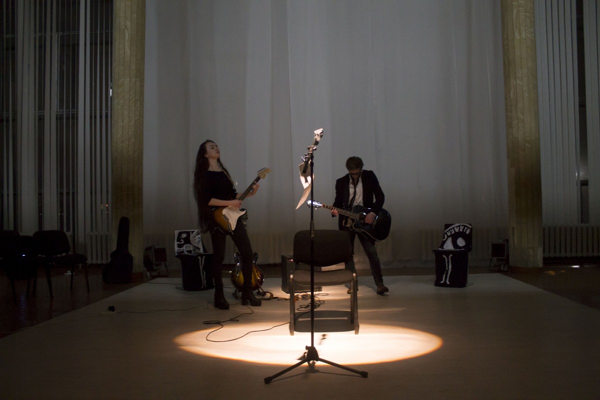 В большой белой зале тьма. Свет только в кругах от прожекторов. Микрофон, несколько стульев, гитары и микшер — ничего не отвлекает от творчества и музыки. Так работает свободная музыкальная пространство Gimme Danger.