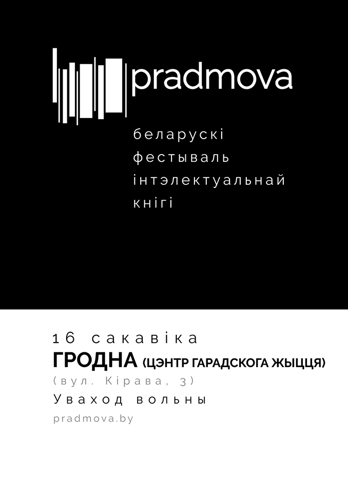 Фестиваль интеллектуальной книги «Прадмова» проходит в этом году во второй раз. В марте — в Полоцке, Гродно, Гомеле, Бресте, а с 4 по 7 апреля фестиваль состоится в минском хабе Ок16. Программа насыщена выступлениями белорусских и зарубежных писателей и интеллектуалов и имеет целью объединить всех участников литературного процесса: издателей, критиков, писателей, переводчиков, дизайнеров и, конечно же, читателей, заинтересованных в качественной книге.