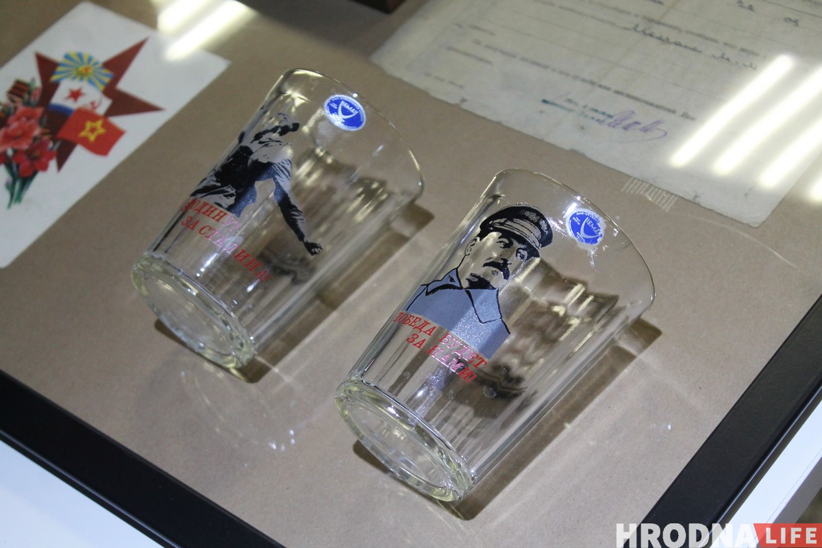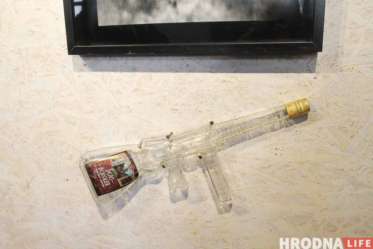 Фотограф показывает гродненские стаканы со Сталиным и бутылку водки в виде автомата и рассуждает о том, «как комично можно подходить, препарировать и продавать войну». И надеется, что через 10-20 лет на войне можно будет зарабатывать деньги.