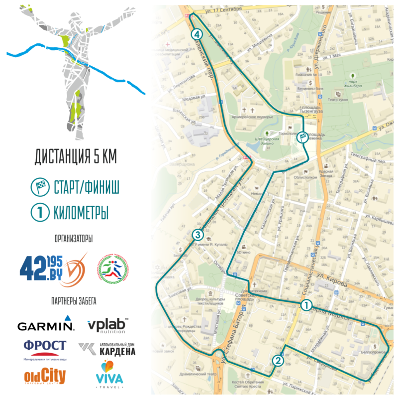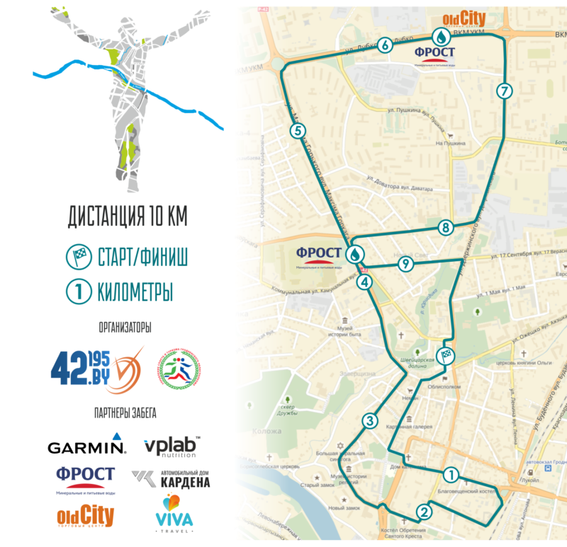 Стартовый выстрел традиционно прозвучит на площади Ленина. Отсюда участники побегут по центральной части города. Фарный костел, Монастырь бернардинцев, драмтеатр, Новый и Старый замки, — это лишь малая часть достопримечательностей Гродно, которые смогут увидеть «вандроўнікі».