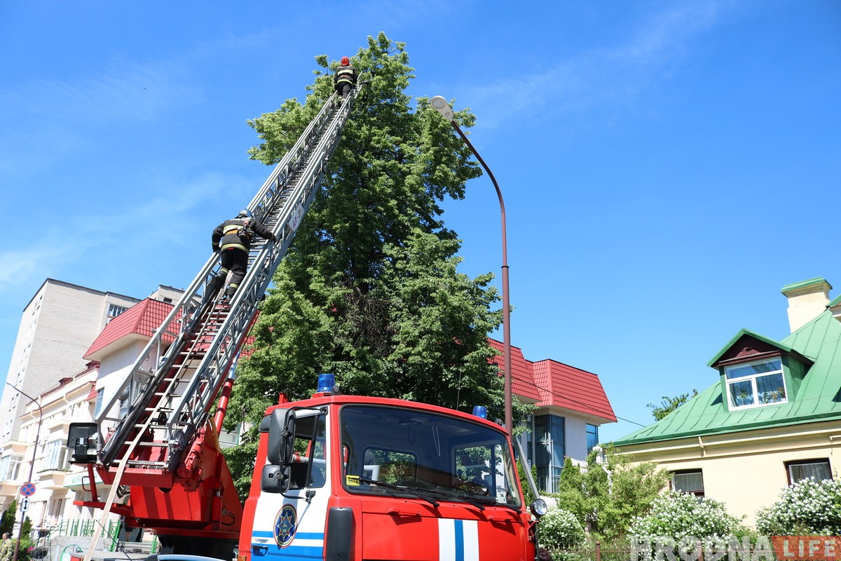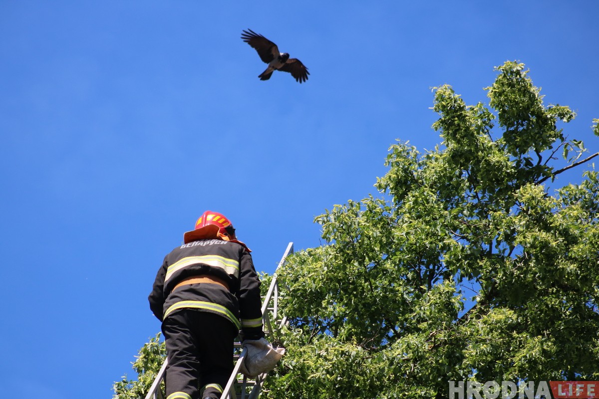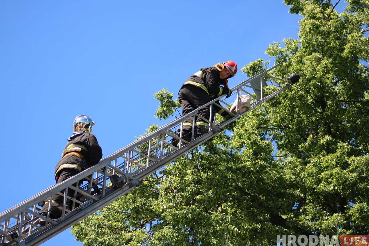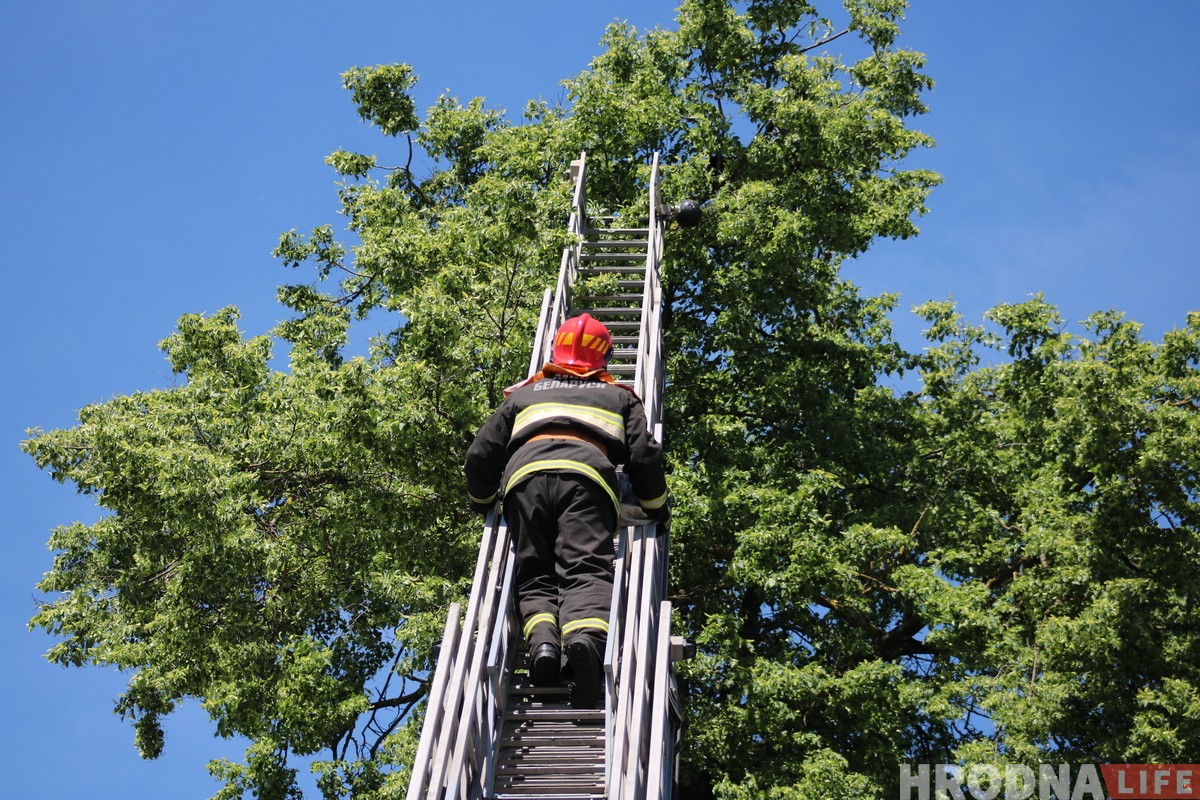 Около 40 минут длилась операция по спасению кота по кличке Малыш. Обеспокоенные хозяева попросили спасателей снять их питомца, который два дня не мог сам спуститься с дерева. Это происходило на улице 1 Мая в центре Гродно.