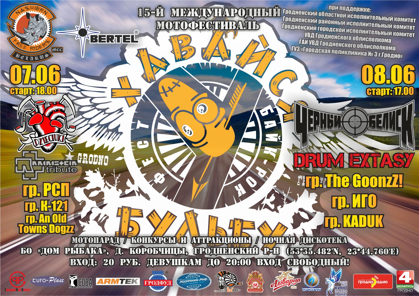 Пятнадцатый рок-байк фестиваль “Хавайся ў Бульбу” пройдет 7-9 июня на базе отдыха “Дом Рыбака” в Коробчицах. Ожидается, что приедут мотоциклисты из многих стран Европы и участницы “Женского Мирового мотопробега”, которые посетили наш город две недели назад в рамках эстафеты.