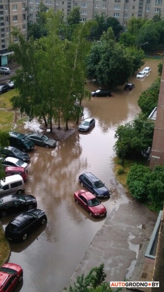 В Гродно вечерний ливень 21 июня прошелся по всему городу. Особенно много воды было в районе улицы Суворова и проспекта Клецкова, пишет, autogrodno.by.