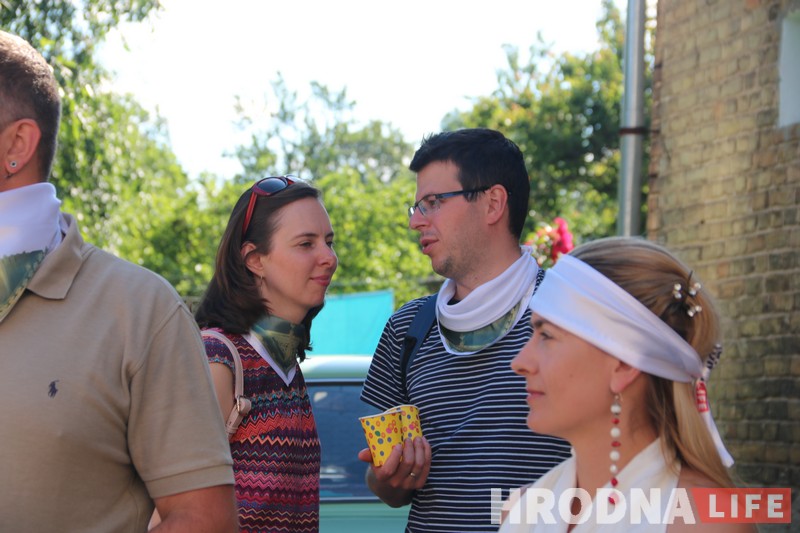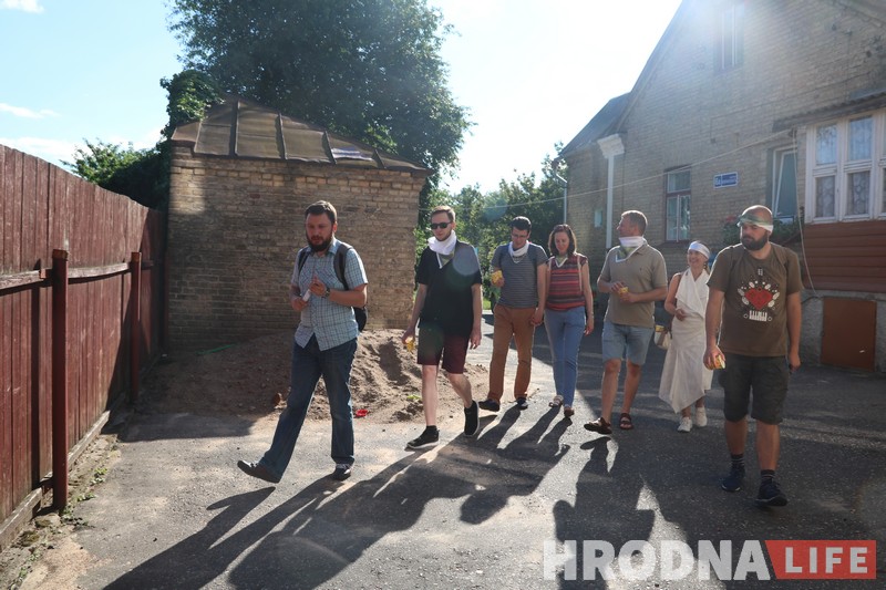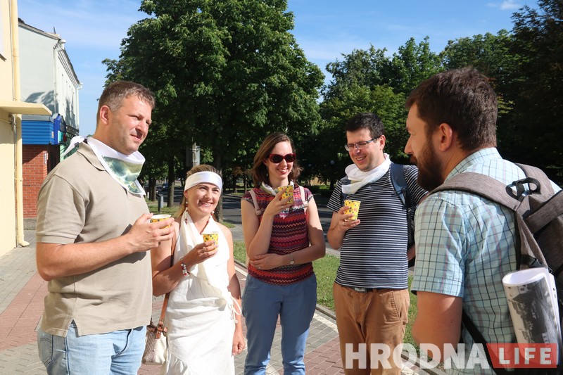 Прогулку по Новому Свету 22 июня провели для гродненцев журналисты Hrodna.life. Рассказывать об одном из самых интересных районов города решили не только словами. Каждое место имело в прошлом свои отличительные запахи, вкусы и звуки. Участники прогулки получили в подарок платочки с изображением крыши «дома с драконами». Этими платочками и предложили завязывать глаза, чтобы угадать и почувствовать запахи и вкусы Нового Света.