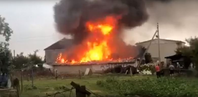 Как сообщают очевидцы, 1 июля во время грозы молния попала в один из домов в деревне Лунно. Все произошло почти мгновенно, постройка очень быстро оказалась объята пламенем.