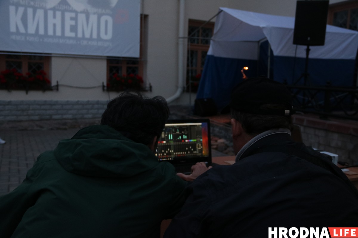 В Гродно 5 июля показали первый фильм программы «Кинемо» этого года. Белорусский фестиваль немого кино и живой музыки проходит уже седьмой раз, в Гродно — шестой. Старые черно-белые фильмы крутят под открытым небом под современную музыку в живом исполнении.