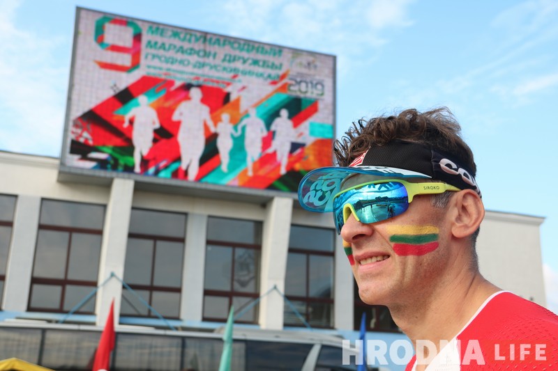 Таутвидас Грабаускас из Литвы свои марафоны уже не считает «Может тридцать пятый? Я мало бегаю марафонов, чаще участвую в соревнованиях Ironman. Недавно был в Германии. На соревнованиях надо было проплыть 8 километров, 400 проехать на велосипеде и 85 пробежать. Я был 16-ым с 80 участников. Марафон для меня — это тренировка». Марафоне Дружбы в Гродно он в первый раз.