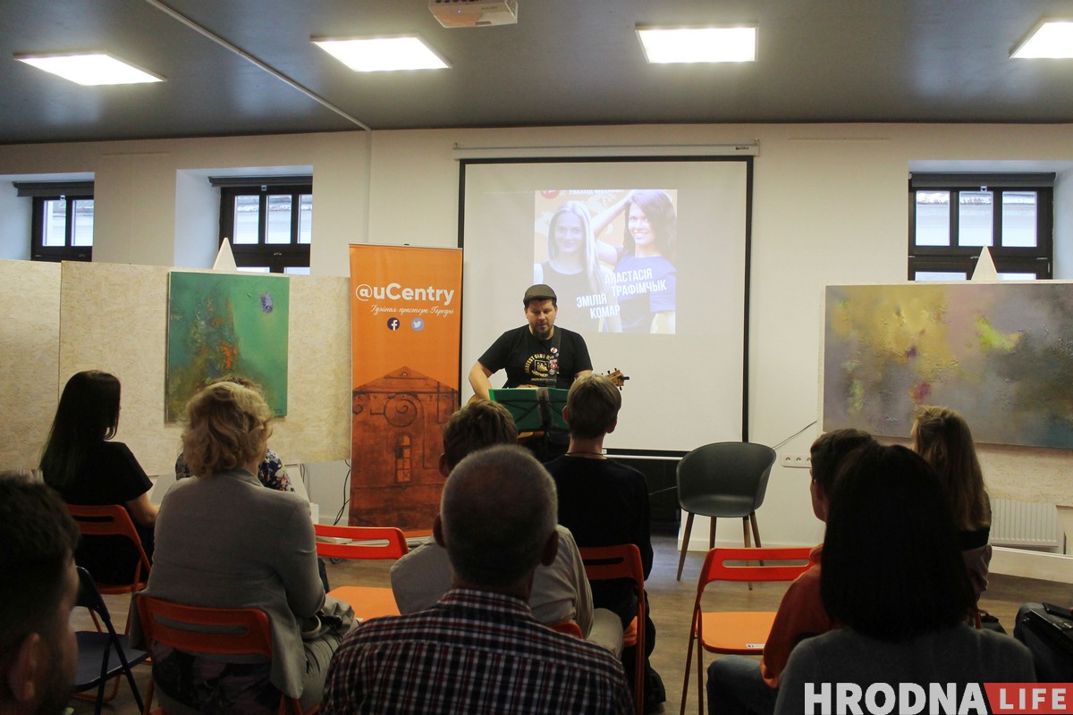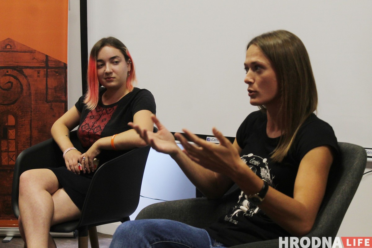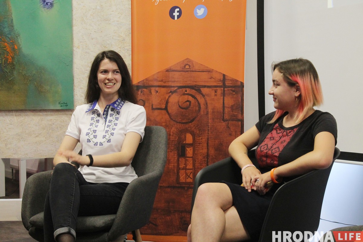Гродненки Эмилия Гаврус и Анастасия Трофимчик рассказали, как пришли к белорусскому языку, как на это реагируют семья и друзья, как воспитать белорусскоязычного ребенка. На десерт выступил Александр Денисов, лидер группы «Dzieciuki».