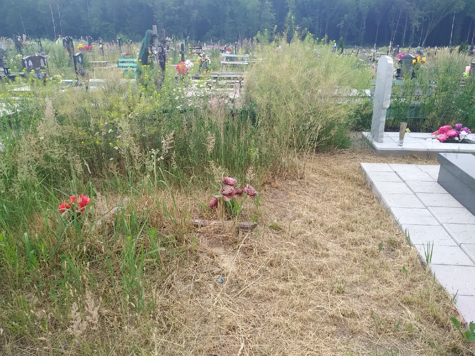 Анатолий говорит, что эта проблема возникает больше на старой части кладбища. На новых секторах другой грунт, и трава растет меньше.