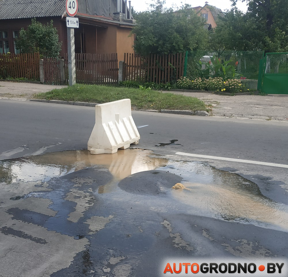 Как сообщил пользователь группы «АвтоГродно» Юрий, на улице Николаева «как обычно лопнули трубы». Свежий асфальт, который положили в июне этого года, поднялся.