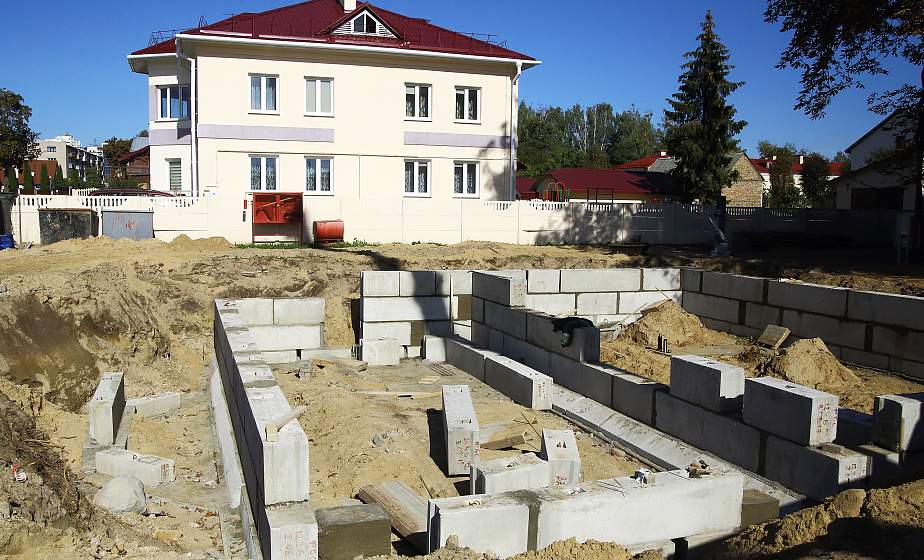 Возводит его ОАО «Гродножилстрой» по типовому проекту. Судя по строящемуся нулевому циклу, в цокольном этаже будет достаточно места для бытовой техники и инвентаря. Во дворе достаточно места, чтобы посадить сад и цветочные клумбы, устроить для детей игровую площадку.