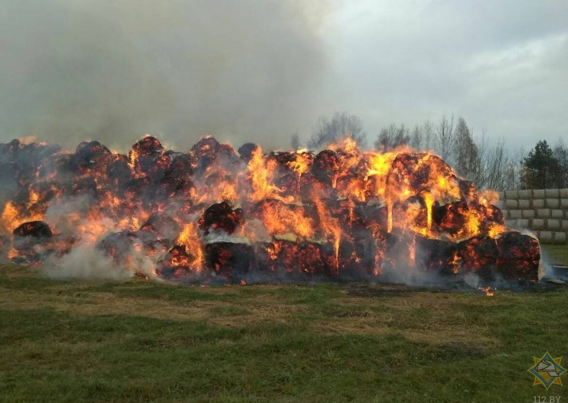 Высота скирд соломы в рулонах — около 8 метров. Для ликвидации пожара также привлекалась техника хозяйства: погрузчик «Амкодор» и трактор. Огнем уничтожено около 100 тонн соломы в рулонах. Люди не пострадали. Причина возгорания — шалость детей с огнем.