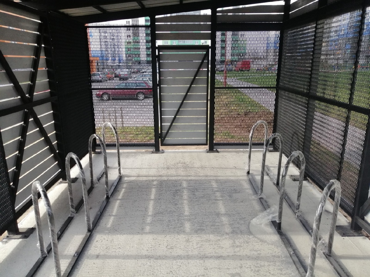 Гараж рассчитан на 20 велосипедов. Стены велогаража сделаны светопрозрачными, чтобы увеличить количество естественного света внутри строения. Низ фасада покрыт обработанным деревом, чтобы не допускать попадания грязи внутрь.