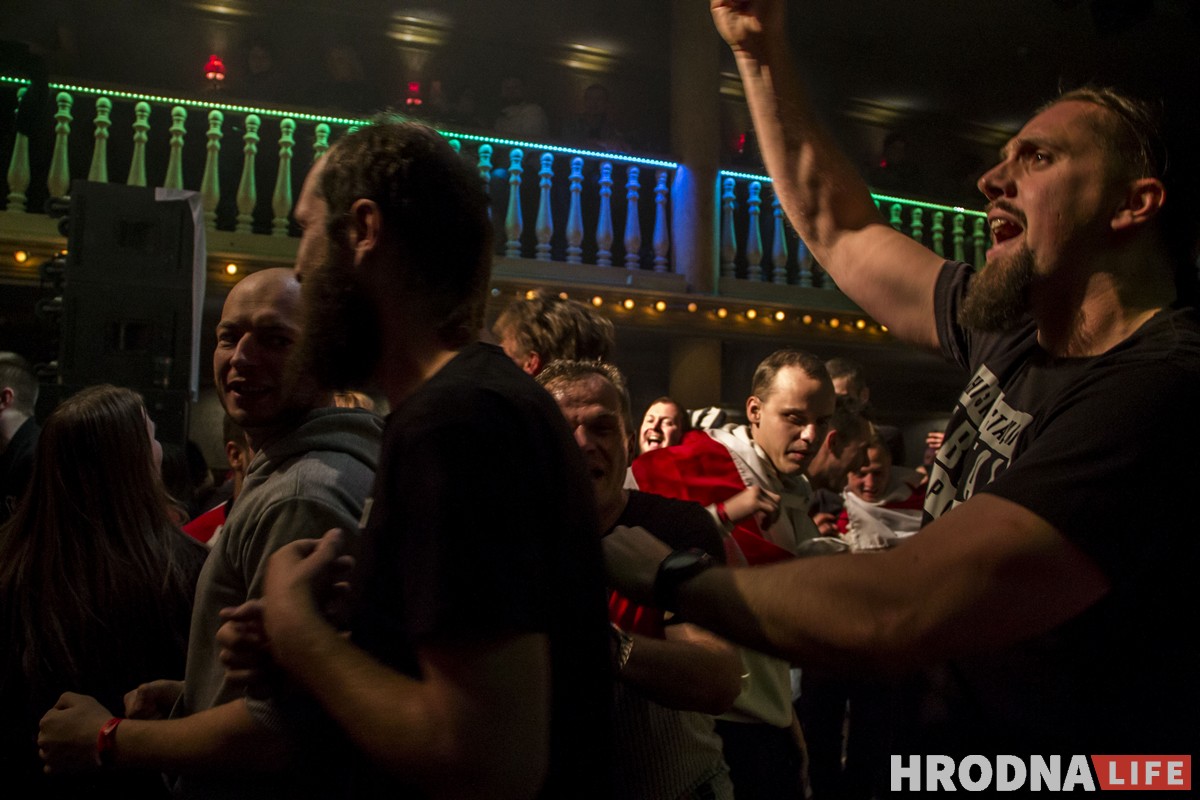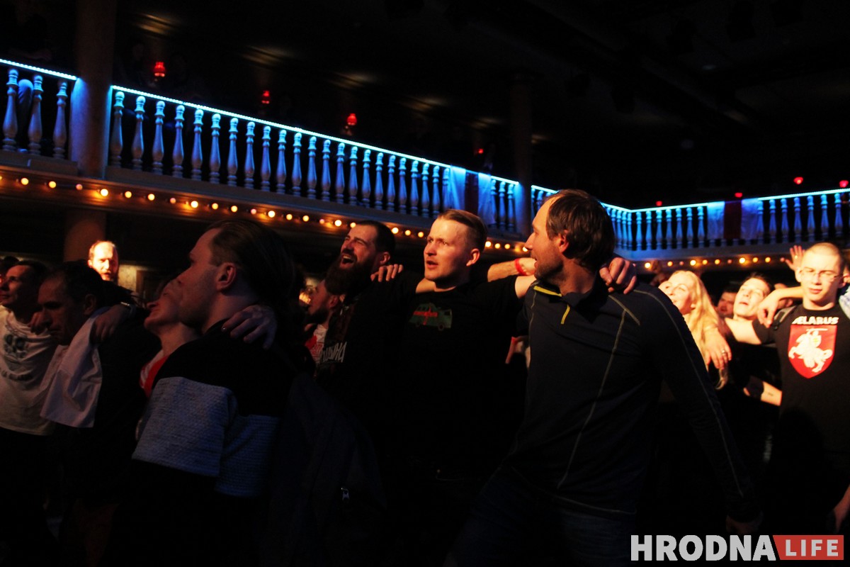Если на концерт и дошли местные, то их было трудно увидеть в толпе белорусов с бело-красно-белыми флагами. На песне «Надпіс на камені пад крыніцай» почти весь зал традиционно стал на колени. И на словах «Будуць давеку крыніцы на гэтай зямлі, будзе давеку наш мужны і мудры, вялікі народ», кажется, каждый почувствовал сакральность момента.