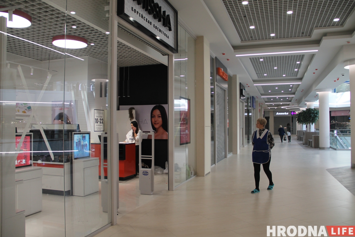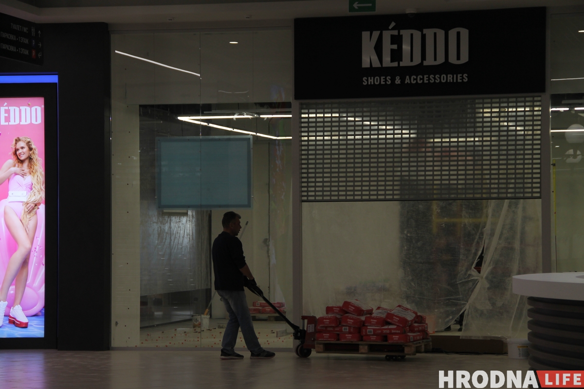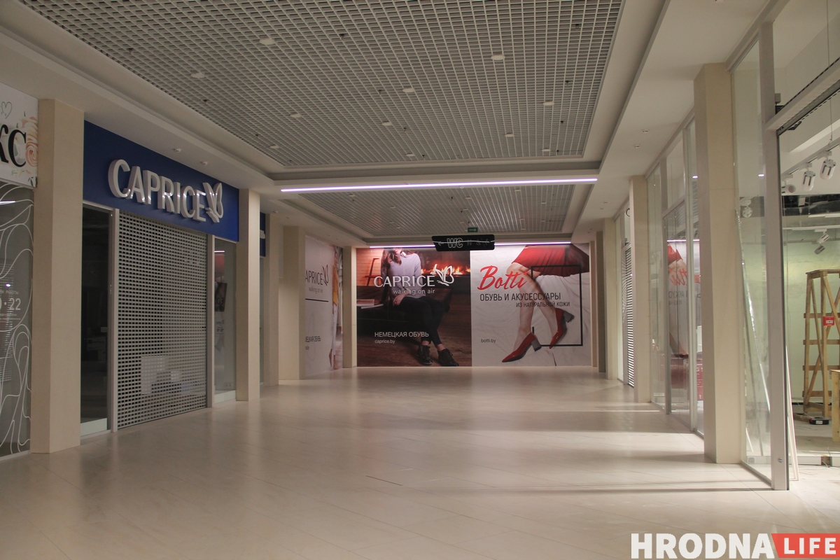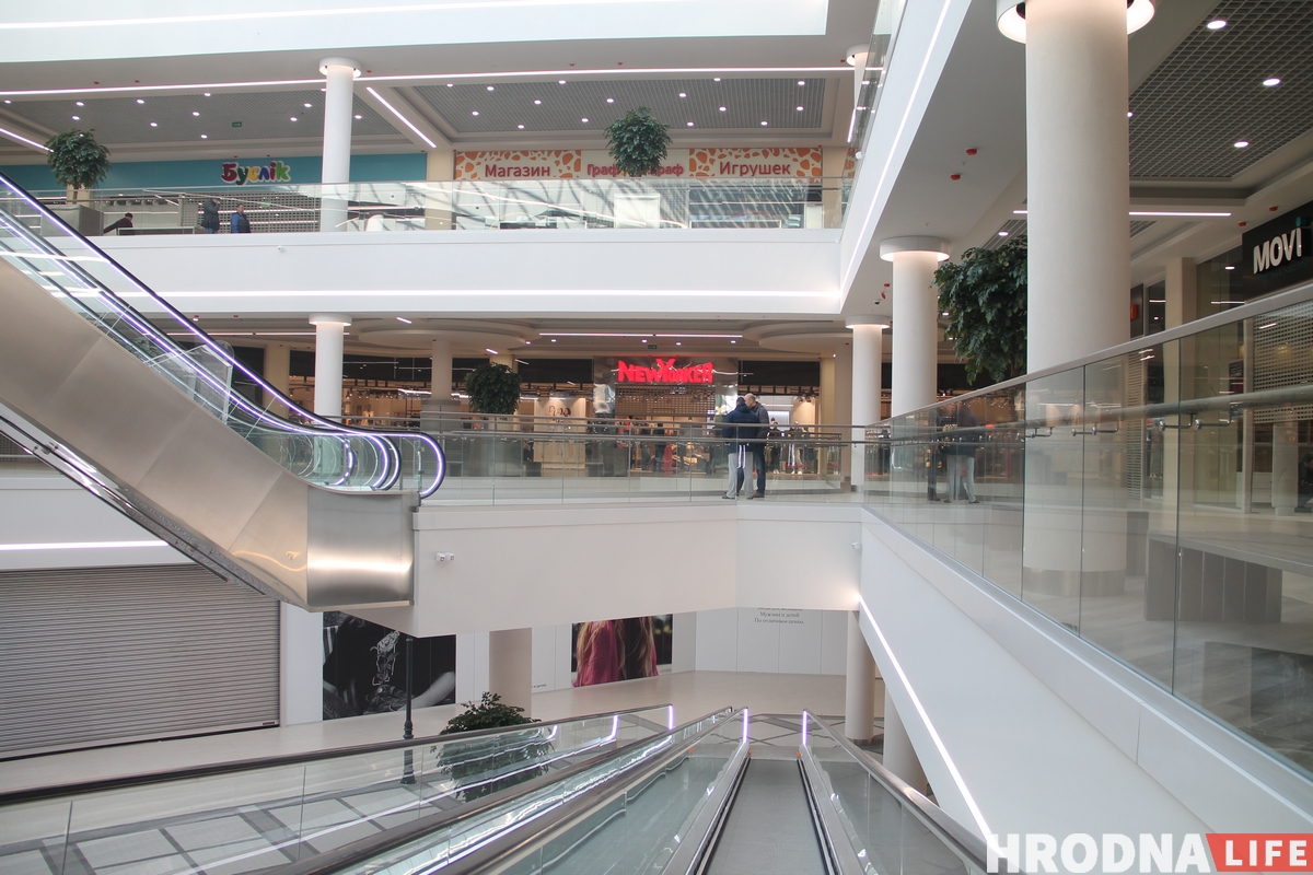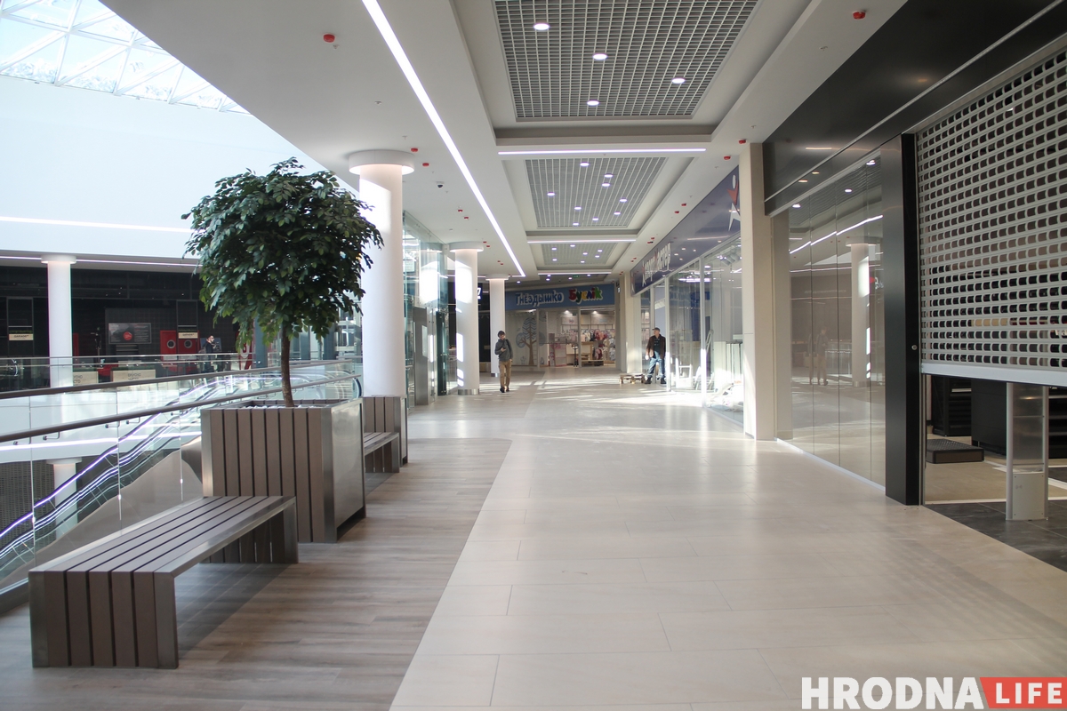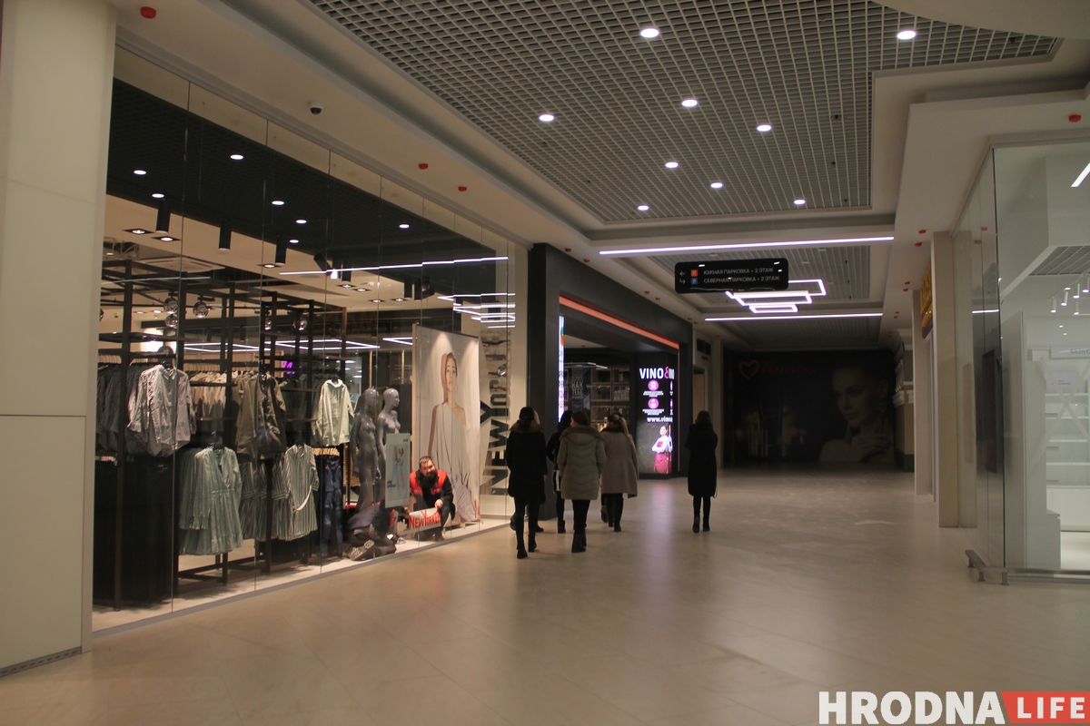 Пока не у всех брендов есть вывески, но они появятся в ближайшее время. Из представленных марок — Savage, NewYorker, Caprice, KEDDO, «Спортмастер», «Кравт» и «5 элемент». Среди детских магазинов также будет «Буслік Гнёздышко» с товарами для новорожденных. В целом будет 60 арендаторов, т.е. магазинов. На втором этаже будет расположен гипермаркет Green – первый в регионе. Он занимает почти 7 тыс. кв.м. арендной площади, 4,5 тыс. кв.м – торговый зал.