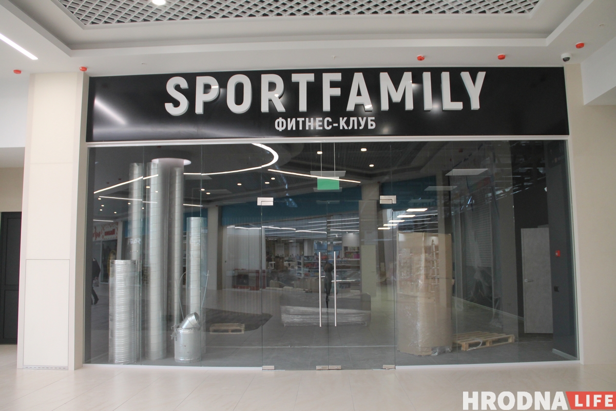 На третьем этаже будет развлекательная зона. Здесь будет самый большой – на 1260 кв.м. — и самый современно оснащенный в Гродно фитнес-клуб SPORTFAMILY с итальянскими тренажерами. Сейчас почти набран персонал – говорят, что лучшие тренеры придут работать сюда. Здесь же будут детские развлекательные центры. Что касается кинотеатра, уже выстроены черновые стены, готов проект. Возможно, он откроется в октябре, но это не точно.
