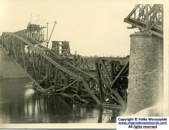 Первый раз мост взорвали при отступлении русские солдаты в 1915 году. Немцы временно восстановили мост в 1918 году с помощью деревянных опор. Только в 1926 году поляки восстановили мост окончательно, при этом усилив опоры.