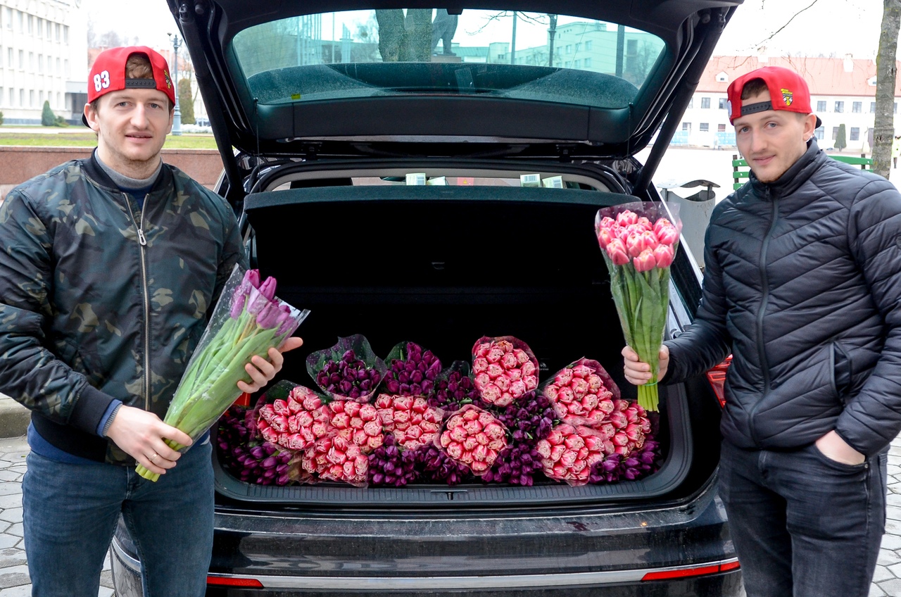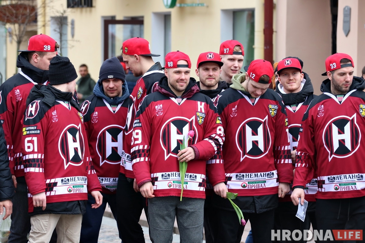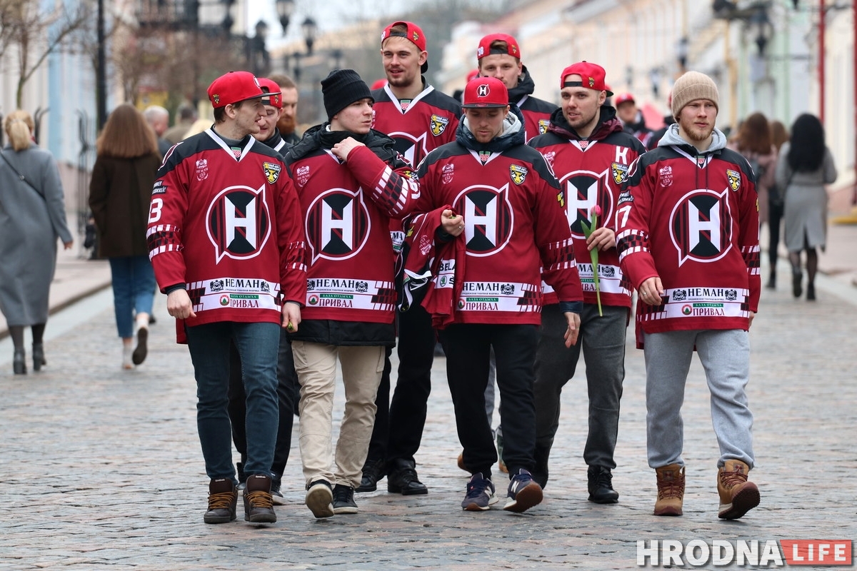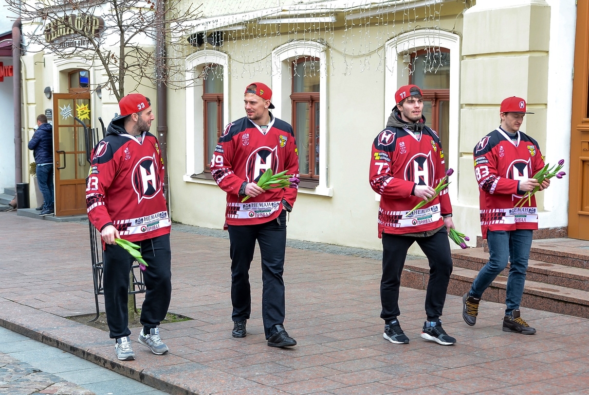В преддверии международного женского дня гродненский «Неман» в полном составе вышел в центр города и поздравил женщин с наступающим праздником. Гродненки от хоккеистов получали в подарок тюльпаны.