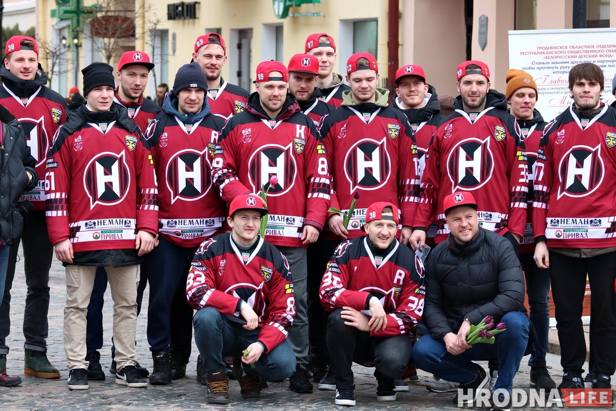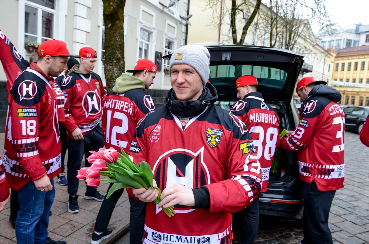 Хоккеисты «Немана» поздравили гродненских женщин с 8 марта