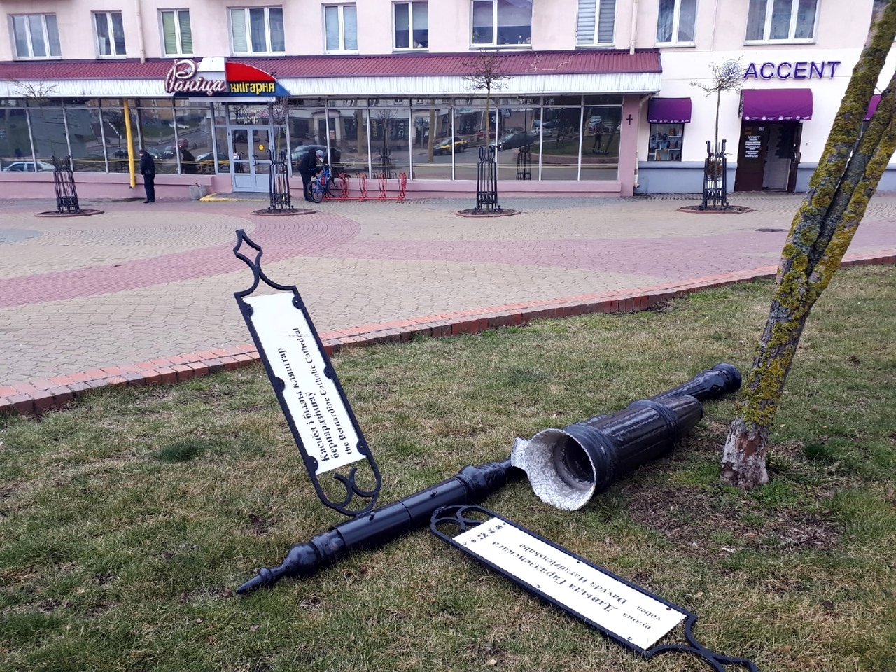 В ночь с 6 на 7 марта возле магазина «Раніца» неизвестные сломали столб с указателями. Об этом рассказала Hrodna.life читательница Юлия.