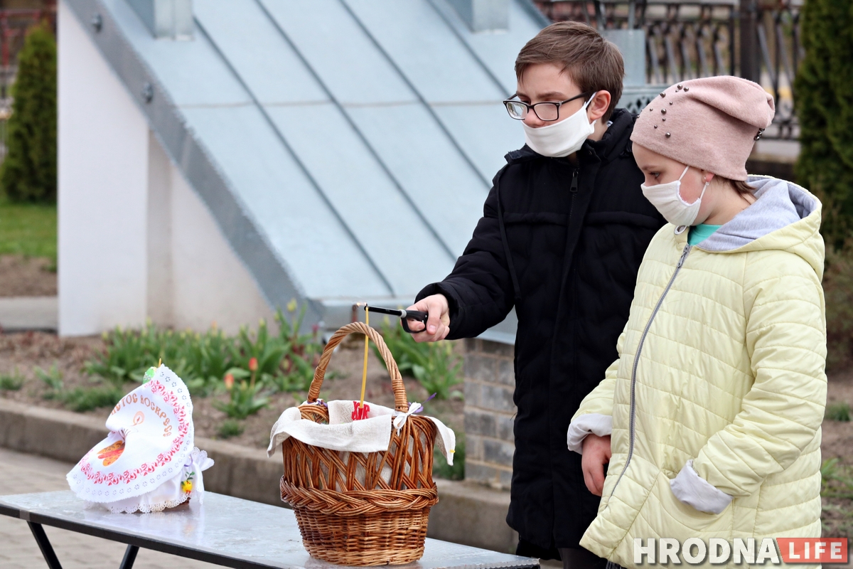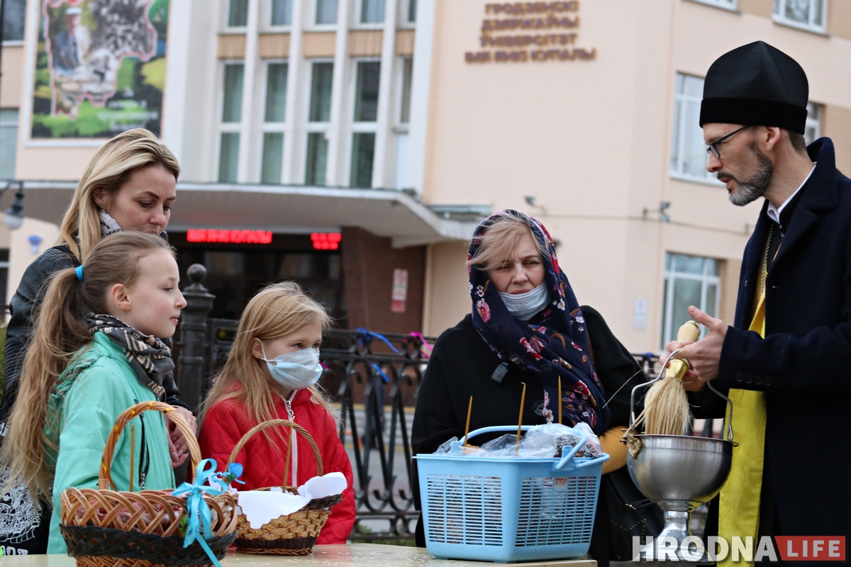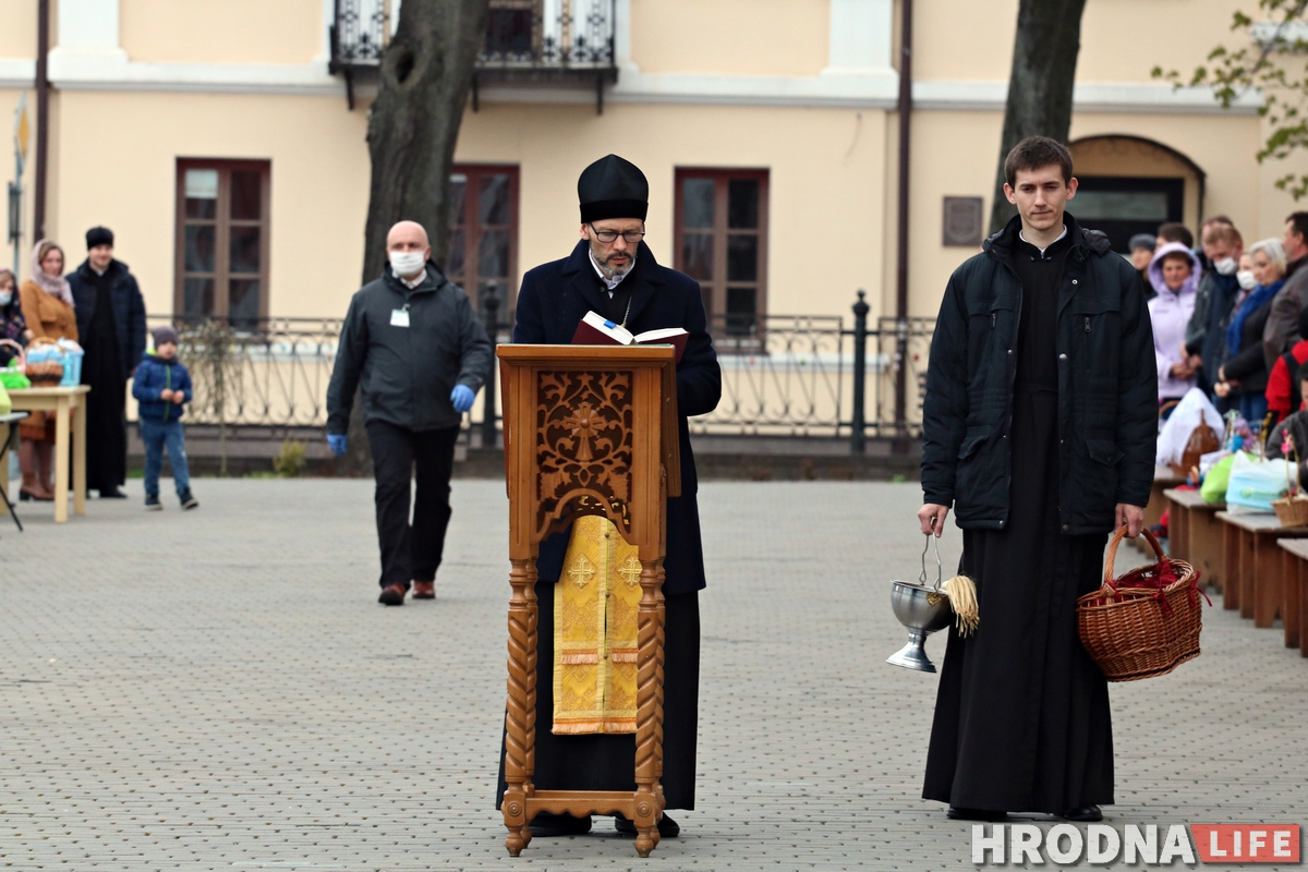 Освящение пасхальной пищи в этом году проходило исключительно на улице. Верующие соблюдали социальную дистанцию, многие были в масках. Освящение возле храмов проходило целый день каждые 15-20 минут, людей много не собиралось.