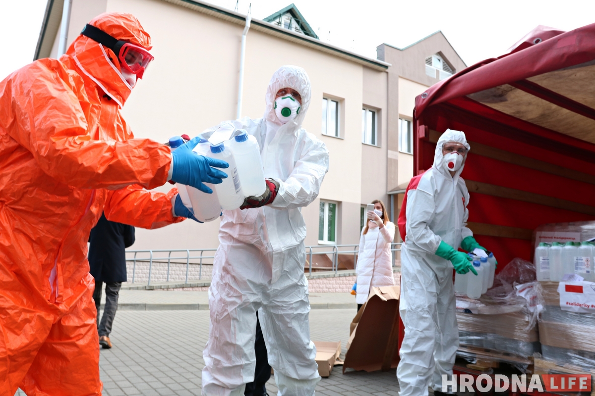 Одну из шести машин с гуманитарной помощью выгрузили в Гродно в областной инфекционной больнице. Далее конвой отправился в Вороново и Минск.