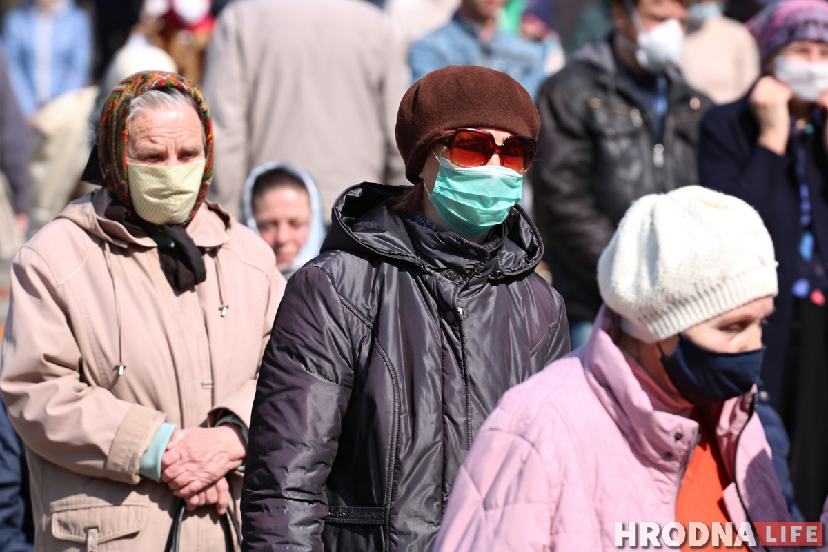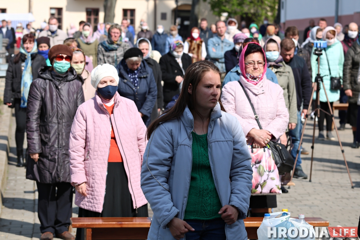 Литургия на Радуницу в Покровском соборе в Гродно впервые прошла на улице. Это связано с эпидемиологической ситуацией в стране. Около 100 верующих пришли на службу.