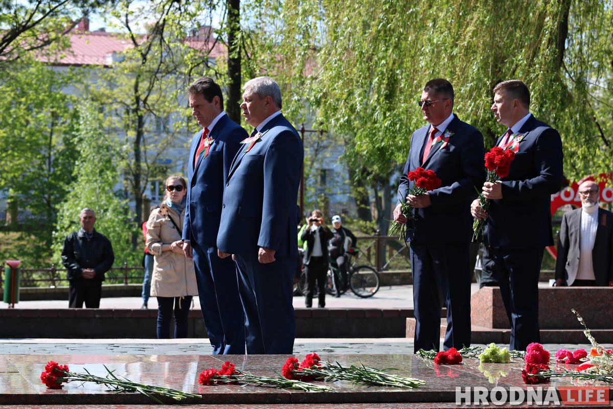 Праздник Победы прошел без традиционных народных гуляний, выставок военной техники и торжественного марша войск Гродненского гарнизона. Городские власти ограничились лишь небольшим митингом и возложением цветов к братской могиле.