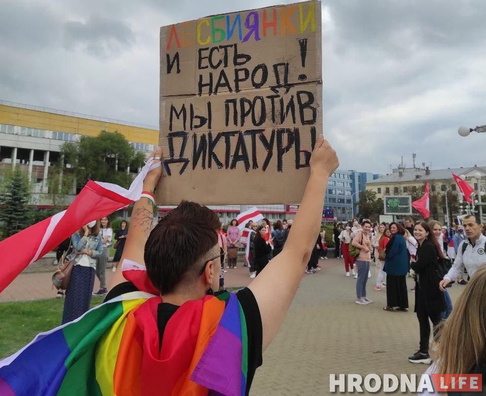 ЛГБТ-колонна впервые открыто присоединилась к протестам в Минске в субботу 5 сентября. 20 активистов и активисток пришли на Женский марш, который собрал около 10 000 человек. Корреспондент Hrodna.life распросила участниц ЛГБТ-колонны и Женского марша, почему они вышли и что значат их плакаты.